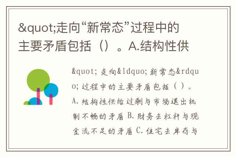 "走向“新常态”过程中的主要矛盾包括()。A.结构性供给过剩与市场退出机制不畅的矛盾 B.财务去杠杆与现金流不足的矛盾 C.住宅去库存与居民需求不足的矛盾 D.公共服务均等化与财政收入增速放慢的矛盾