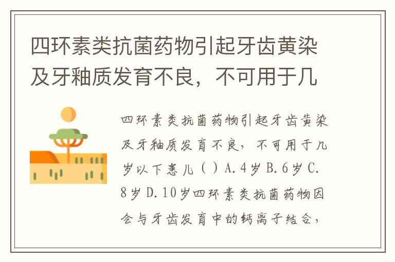 四环素类抗菌药物引起牙齿黄染及牙釉质发育不良,不可用于几岁以下患儿()A.4岁 B.6岁 C.8岁 D.10岁