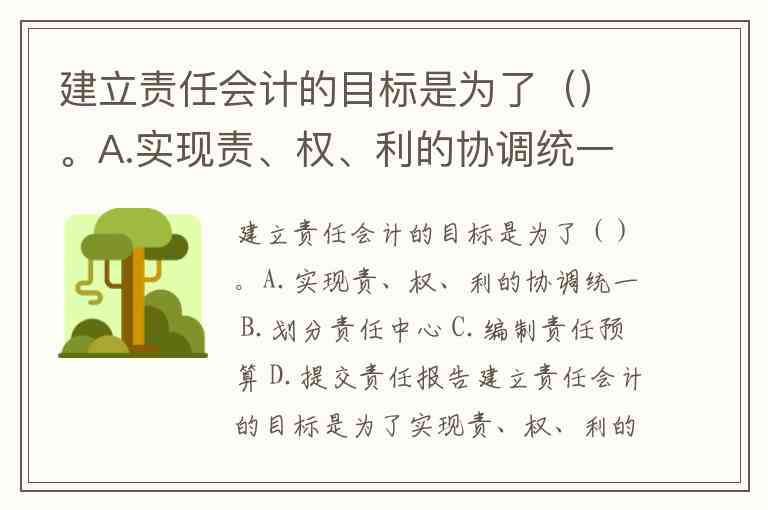 建立责任会计的目标是为了()。A.实现责、权、利的协调统一 B.划分责任中心 C.编制责任预算 D.提交责任报告