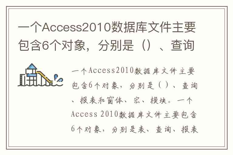 一个Access 2010数据库文件主要包含6个对象,分别是表、查询、报表和窗体、宏、模块。其中,表是整个数据库系统的基础,它是数据库中唯一存储数据的对象,其他对象(如查询、窗体、报表等)都需以表为数据源进行操作。