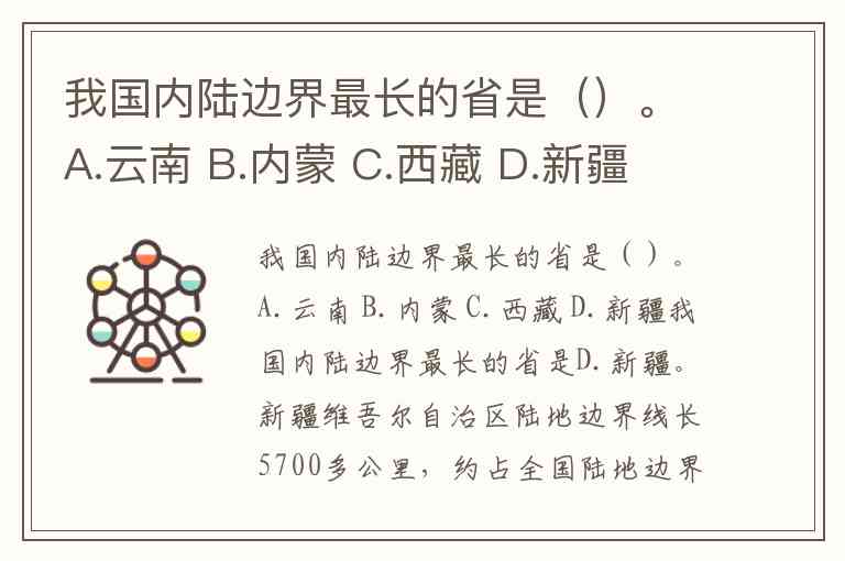我国内陆边界最长的省是()。A.云南 B.内蒙 C.西藏 D.新疆