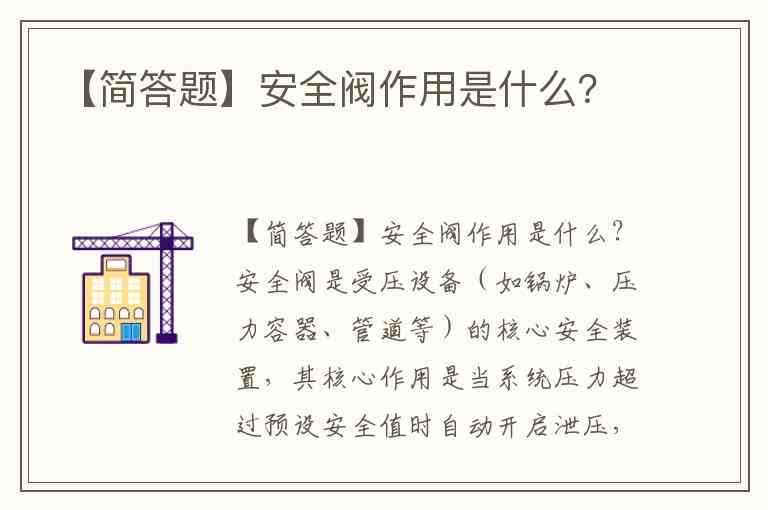 安全阀是受压设备(如锅炉、压力容器、管道等)的核心安全装置,其核心作用是当系统压力超过预设安全值时自动开启泄压,防止设备超压损坏或爆炸,压力降至安全范围后又能自动关闭,保障生产系统安全运行。