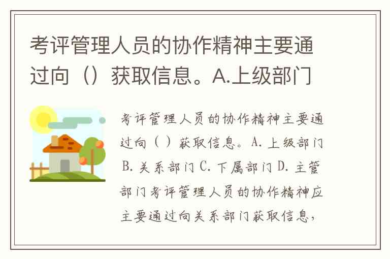 考评管理人员的协作精神主要通过向()获取信息。A.上级部门 B.关系部门 C.下属部门 D.主管部门