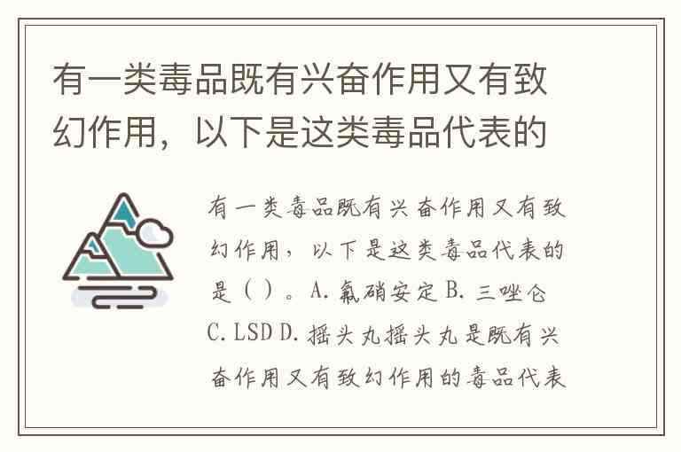 有一类毒品既有兴奋作用又有致幻作用,以下是这类毒品代表的是()。A.氟硝安定 B.三唑仑 C.LSD D.摇头丸