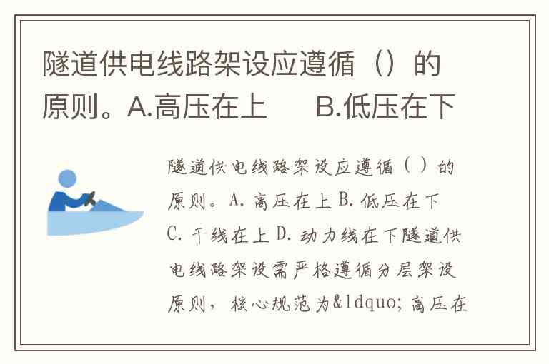 隧道供电线路架设应遵循()的原则。A.高压在上 B.低压在下 C.干线在上 D.动力线在下