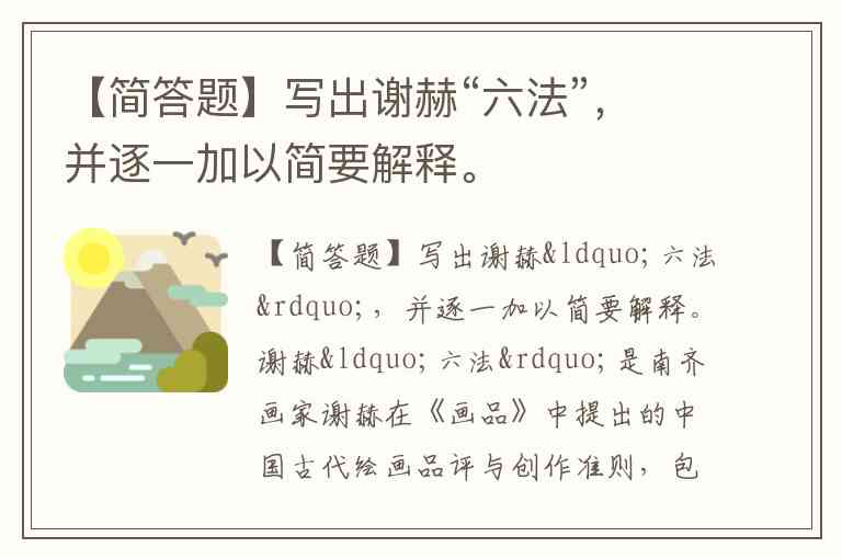 【简答题】写出谢赫“六法”,并逐一加以简要解释。