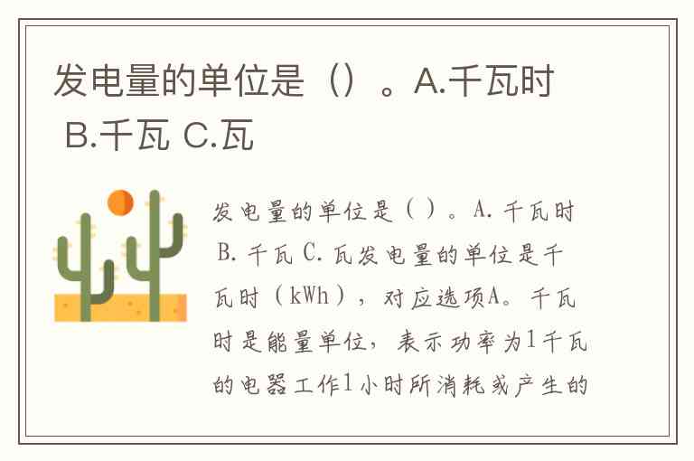 发电量的单位是()。A.千瓦时 B.千瓦 C.瓦
