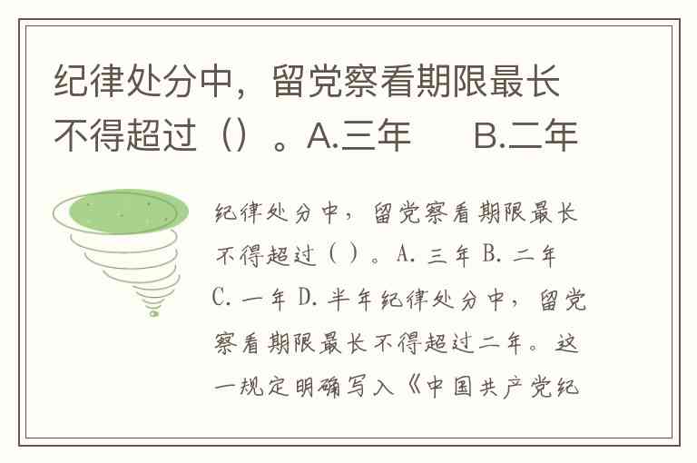 纪律处分中,留党察看期限最长不得超过()。A.三年 B.二年 C.一年 D.半年