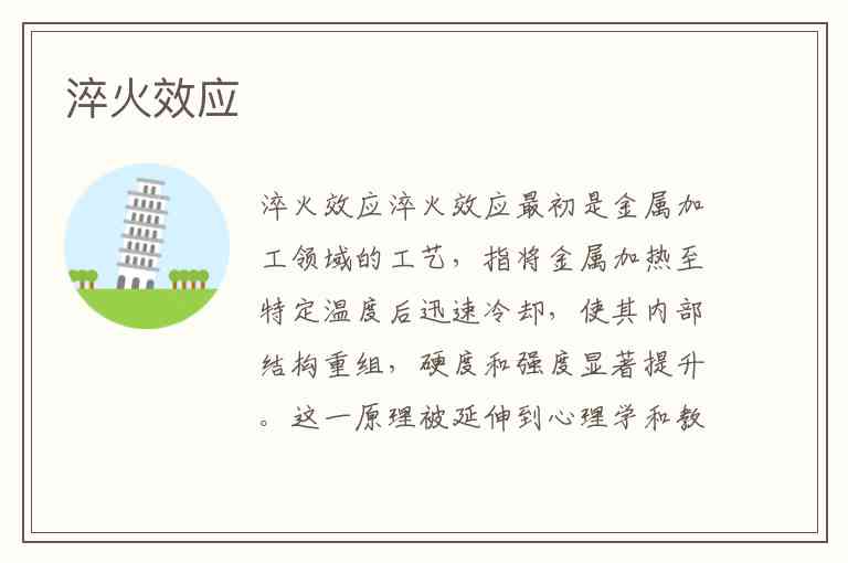 淬火效应最初是金属加工领域的工艺,指将金属加热至特定温度后迅速冷却,使其内部结构重组,硬度和强度显著提升。这一原理被延伸到心理学和教育学中,形成了独特的“淬火效应”——通过适度压力、冷静处理或挫折经历,增强个体的心理韧性和应对能力。