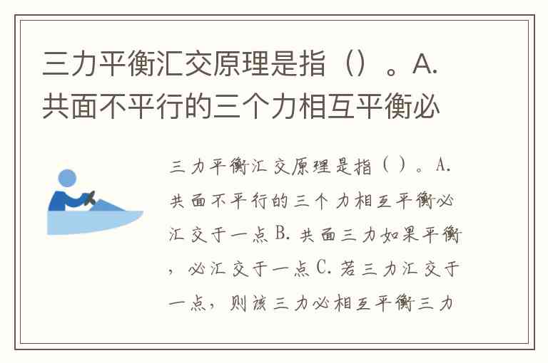 三力平衡汇交原理是指()。A.共面不平行的三个力相互平衡必汇交于一点 B.共面三力如果平衡,必汇交于一点 C.若三力汇交于一点,则该三力必相互平衡