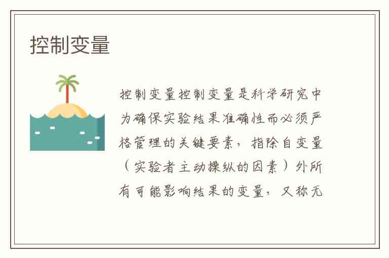 控制变量是科学研究中为确保实验结果准确性而必须严格管理的关键要素,指除自变量(实验者主动操纵的因素)外所有可能影响结果的变量,又称无关变量或额外变量。其核心逻辑是将多因素问题分解为单因素问题研究——通过保持其他条件不变,仅改变一个自变量来观察其对因变量的独立影响,最终综合得出各因素间的因果关系。这种方法如同在复杂系统中"关闭其他旋钮",只调节目标开关,是科学探究从混沌到有序的桥梁。