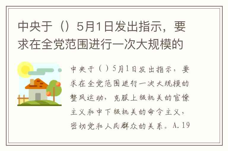 中央于()5月1日发出指示,要求在全党范围进行一次大规模的整风运动,克服上级机关的官僚主义和中下级机关的命令主义,密切党和人民群众的关系。A.1950年 B.1951年 C.1953年