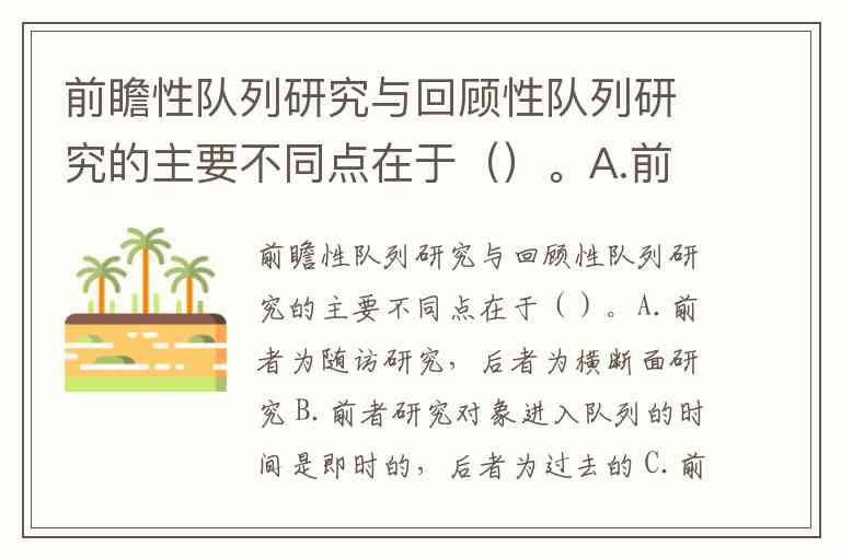 B正确:前瞻性队列的暴露分组和随访始于即时,回顾性队列则基于过去的暴露状态分组。