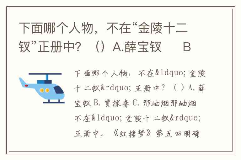 下面哪个人物,不在“金陵十二钗”正册中?()A.薛宝钗 B.贾探春 C.邢岫烟