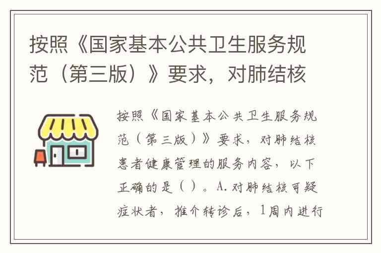 根据《国家基本公共卫生服务规范(第三版)》,肺结核患者健康管理的核心在于早期筛查、规范随访与全程督导服药。以下是对各选项的具体分析: