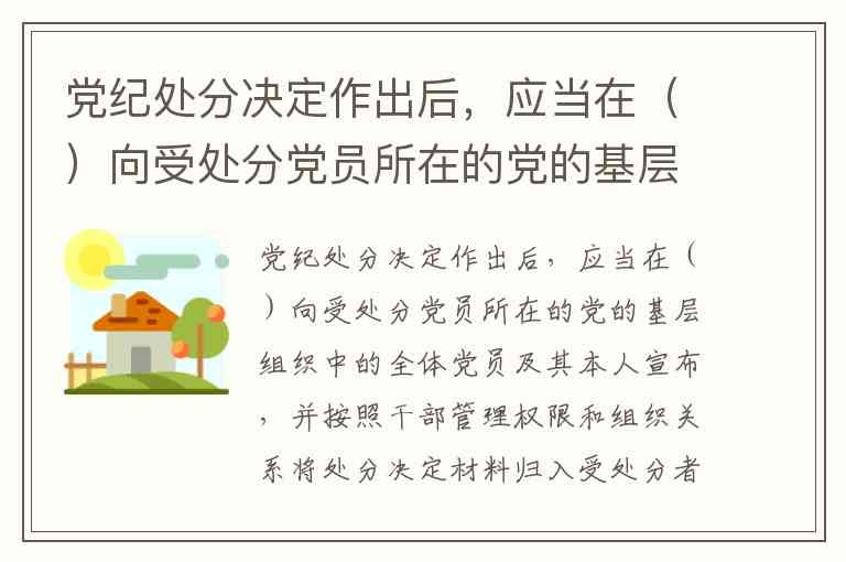 党纪处分决定作出后,应当在()向受处分党员所在的党的基层组织中的全体党员及其本人宣布,并按照干部管理权限和组织关系将处分决定材料归入受处分者档案。A.半个月内 B.60日内 C.一个月内 D.45日内