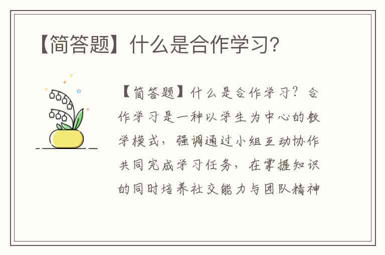 合作学习是一种以学生为中心的教学模式,强调通过小组互动协作共同完成学习任务,在掌握知识的同时培养社交能力与团队精神。与传统教师主导的单向教学不同,它将学生置于动态的社会化学习环境中,通过“积极互依”“个人责任”“面对面互动”“协作技能”和“小组自评”五大核心要素,实现认知、情感与技能目标的均衡发展。