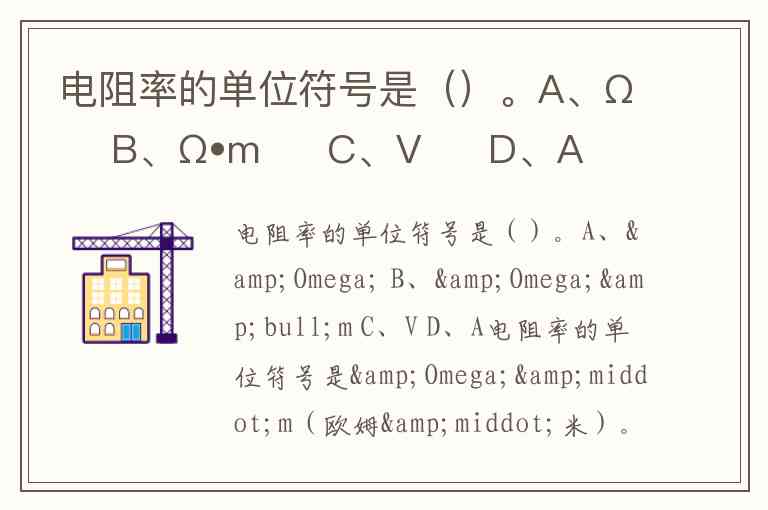电阻率的单位符号是()。A、Ω B、Ω•m C、V D、A