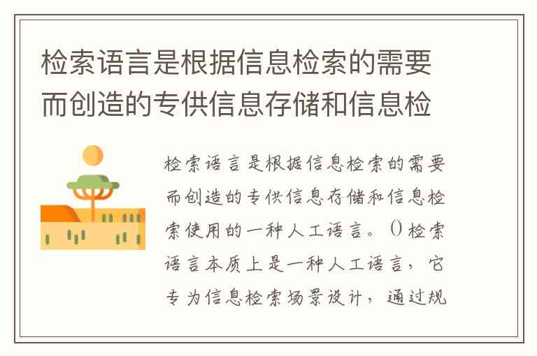 检索语言是根据信息检索的需要而创造的专供信息存储和信息检索使用的一种人工语言。()
