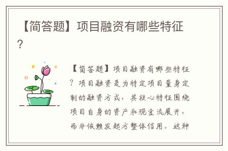 【简答题】项目融资有哪些特征?