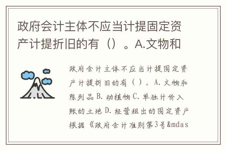 根据《政府会计准则第3号——固定资产》第十七条明确规定,政府会计主体对文物和陈列品、动植物、单独计价入账的土地等五类资产不计提折旧。这些资产因特殊性质或计量方式,不适用于常规折旧逻辑:文物和陈列品具有不可替代性和文化价值保值特性;动植物的生命特性使其价值评估不同于传统固定资产;单独计价入账的土地(如境外购买的所有权土地)因使用期无限而无需折旧。