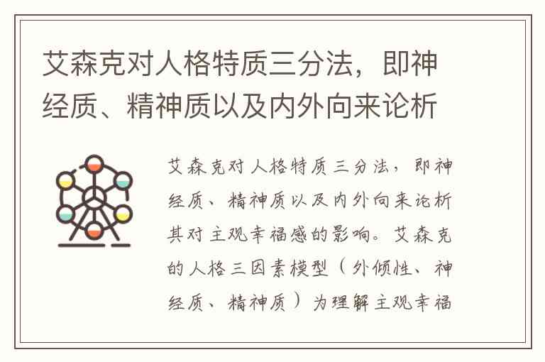 艾森克对人格特质三分法,即神经质、精神质以及内外向来论析其对主观幸福感的影响。