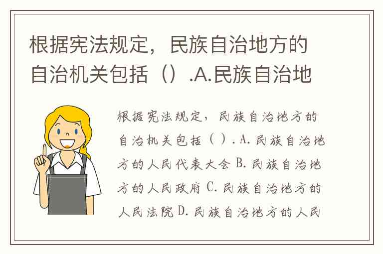 根据宪法规定,民族自治地方的自治机关包括().A.民族自治地方的人民代表大会 B.民族自治地方的人民政府 C.民族自治地方的人民法院 D.民族自治地方的人民检察院