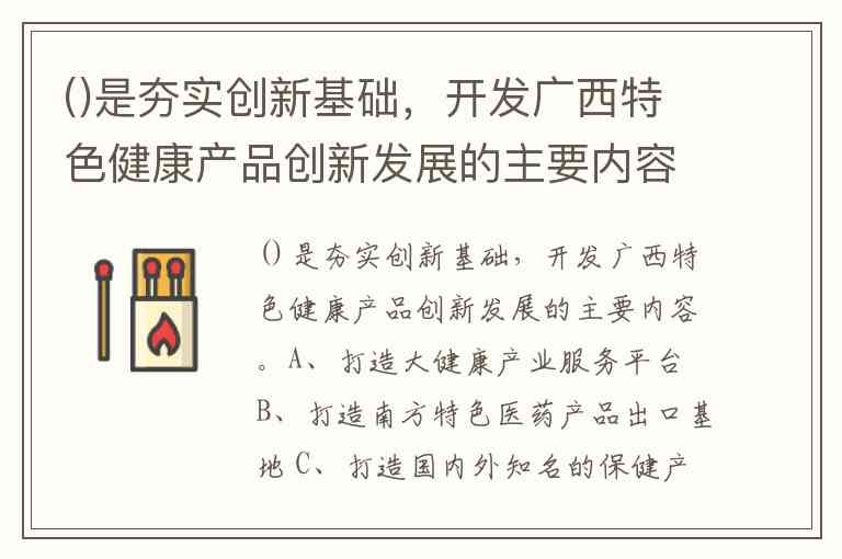 ()是夯实创新基础,开发广西特色健康产品创新发展的主要内容。A、打造大健康产业服务平台 B、打造南方特色医药产品出口基地 C、打造国内外知名的保健产业品牌 D、鼓励中药壮瑶药产业发展壮大 此题为多项选择题。