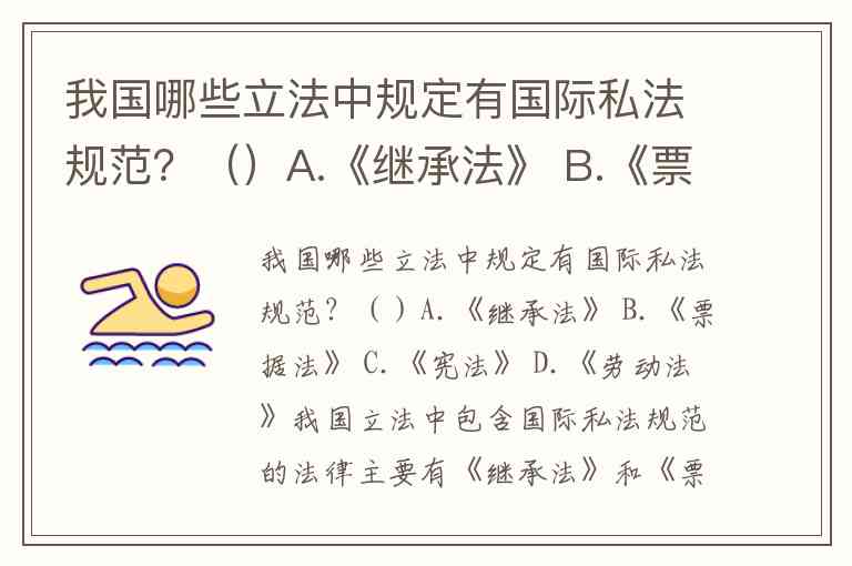 我国立法中包含国际私法规范的法律主要有《继承法》和《票据法》。《宪法》作为国家根本大法,未直接规定国际私法规范;《劳动法》虽涉及劳动关系,但未专门规定涉外劳动法律适用规则。