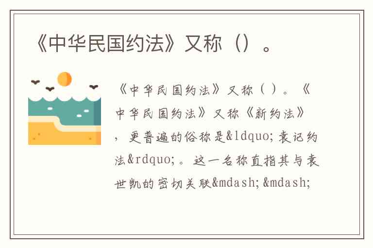 《中华民国约法》又称()。