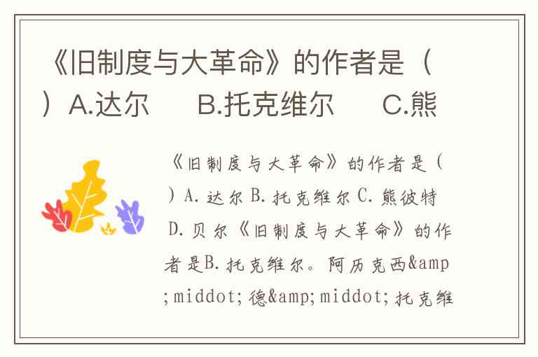 《旧制度与大革命》的作者是()A.达尔 B.托克维尔 C.熊彼特 D.贝尔