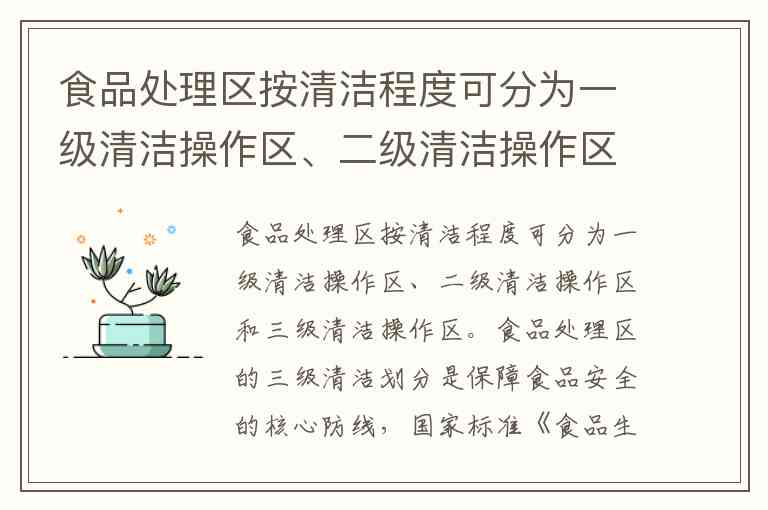 食品处理区按清洁程度可分为一级清洁操作区、二级清洁操作区和三级清洁操作区。