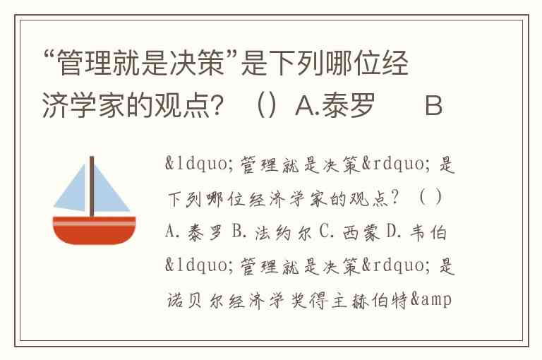 “管理就是决策”是下列哪位经济学家的观点?()A.泰罗 B.法约尔 C.西蒙 D.韦伯