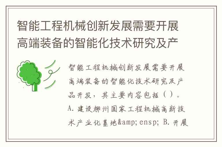 智能工程机械创新发展需要开展高端装备的智能化技术研究及产品开发,其主要内容包括()。A.建设柳州国家工程机械高新技术产业化基地 B.开展智能轮式装载机、自感知预应力锚具和拉索产品等智能工程机械智能化技术研究及产品开发 C.开展替代进口的智能化多功能除雪设备等智能工程机械智能化技术研究及产品开发 D.开展智能轮式装载机、智能挖掘机、智能旋挖机、远程特种服务型挖掘机等智能工程机械智能化技术研究及产品开发