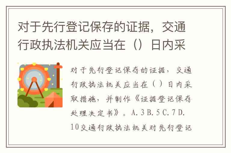 对于先行登记保存的证据,交通行政执法机关应当在()日内采取措施,并制作《证据登记保存处理决定书》。A.3 B.5 C.7 D.10