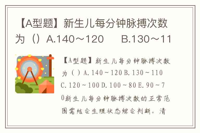 为何题目选项呈现“140~120”的倒序表述?这实际是医学多选题的常见设计,本质仍指向120-140次/分的区间范围。结合各年龄段脉搏规律(新生儿最快,随年龄增长逐渐减慢),该答案也与“新生儿脉搏高于婴儿期(110-130次/分)”的生理特点一致。