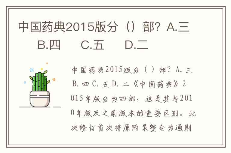 中国药典2015版分()部?A.三 B.四 C.五 D.二