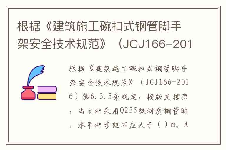 根据《建筑施工碗扣式钢管脚手架安全技术规范》(JGJ166-2016)第6.3.5条规定,模版支撑架,当立杆采用Q235级材质钢管时,水平杆步距不应大于()m。A.1.5 B.1.8 C.2 D.2.5