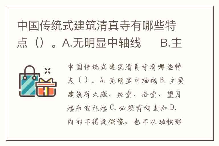 中国传统式建筑清真寺有哪些特点()。A.无明显中轴线 B.主要建筑有大殿、经堂、浴堂、望月楼和宣礼楼 C.必须背向麦加 D.内部不得设偶像,也不以动物形象作装饰