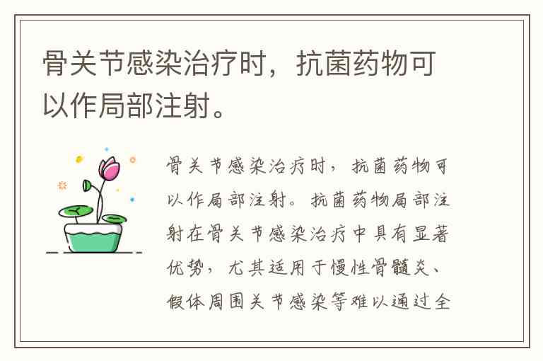 骨关节感染治疗时,抗菌药物可以作局部注射。