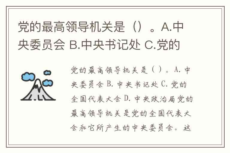 党的最高领导机关是()。A.中央委员会 B.中央书记处 C.党的全国代表大会 D.中央政治局