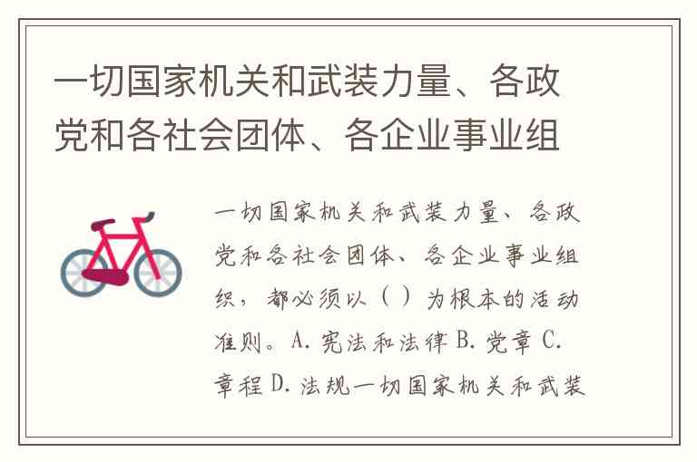 一切国家机关和武装力量、各政党和各社会团体、各企业事业组织,都必须以()为根本的活动准则。A.宪法和法律 B.党章 C.章程 D.法规