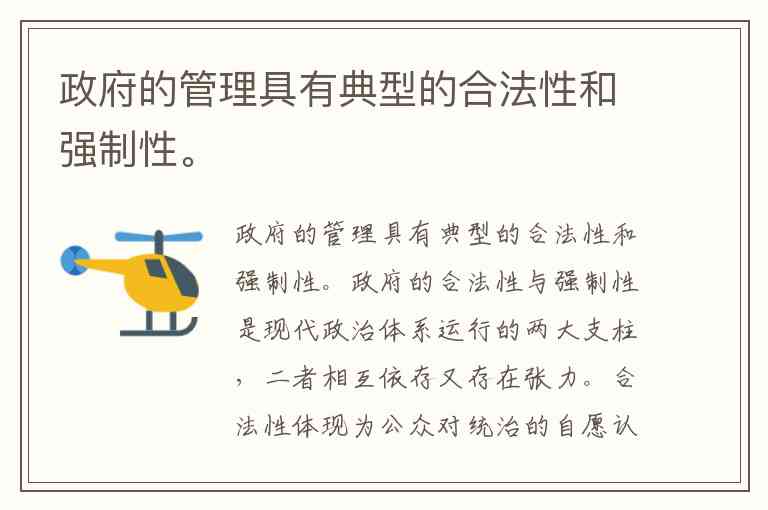 政府的合法性与强制性是现代政治体系运行的两大支柱,二者相互依存又存在张力。合法性体现为公众对统治的自愿认同,其核心是政府的"正当性来源",需满足历史必然性、道义支持和事实接受性三个维度。这种认同并非单纯来自法律条文(合法律性),更源于道德准则、民意选择和公共服务能力——从传统社会的"暴力基础"到现代社会的"公共服务程度",合法性基础随生产力发展不断演进。例如中国政府通过改革开放提升经济绩效、转换意识形态话语,重新赢得民众支持,正是合法性重构的典型案例。