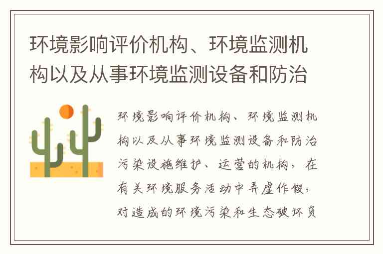 根据《中华人民共和国环境保护法》第六十五条明确规定,环境影响评价机构、环境监测机构以及从事环境监测设备和防治污染设施维护、运营的机构,在有关环境服务活动中弄虚作假,对造成的环境污染和生态破坏负有责任的,除依照法律法规予以处罚外,还应当与其他责任者承担连带责任。这一制度设计旨在强化环境服务机构的法律约束,通过"连带担责"倒逼其规范执业。