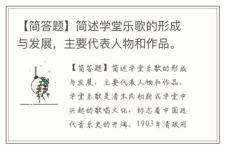 【简答题】简述学堂乐歌的形成与发展,主要代表人物和作品。