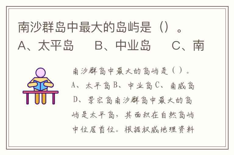 南沙群岛中最大的岛屿是()。A、太平岛 B、中业岛 C、南威岛 D、景宏岛