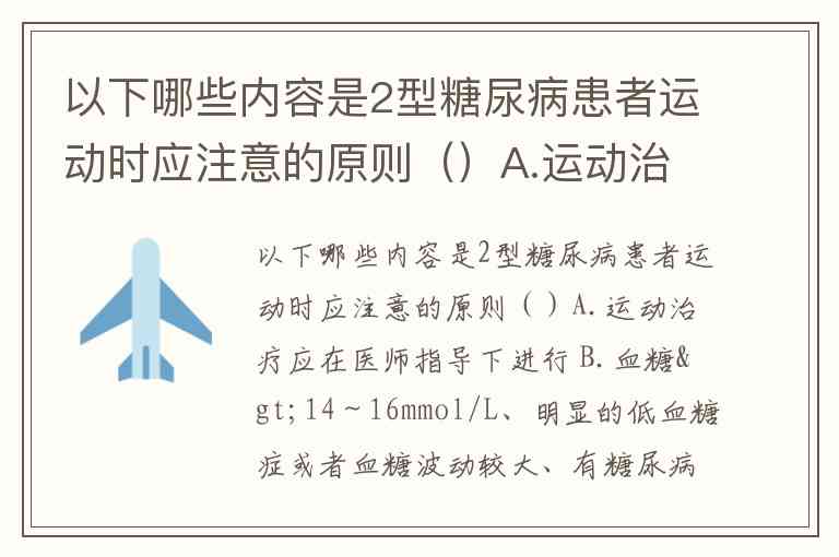 2型糖尿病患者运动时需遵循科学原则以确保安全有效,题目选项A、B、C、D均符合权威指南建议,正确答案为E.以上都是。以下结合《中国2型糖尿病运动治疗指南(2024版)》及临床实践展开分析: