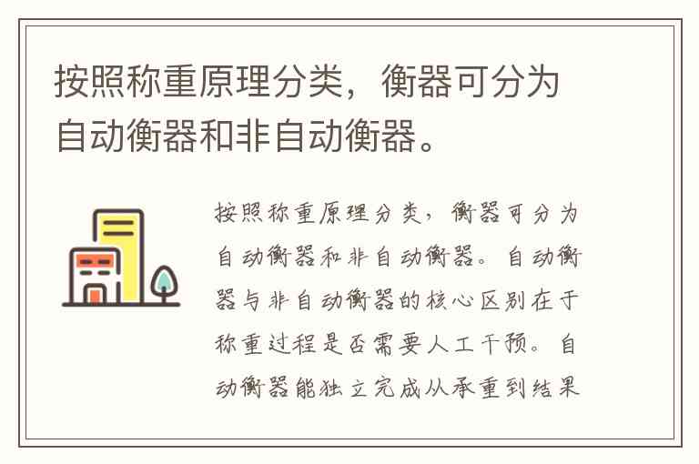按照称重原理分类,衡器可分为自动衡器和非自动衡器。