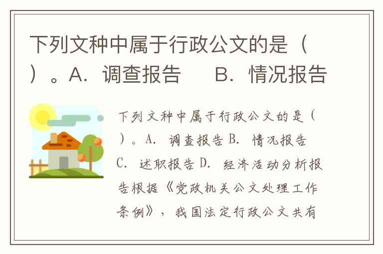 下列文种中属于行政公文的是()。A.调查报告 B.情况报告 C.述职报告 D.经济活动分析报告