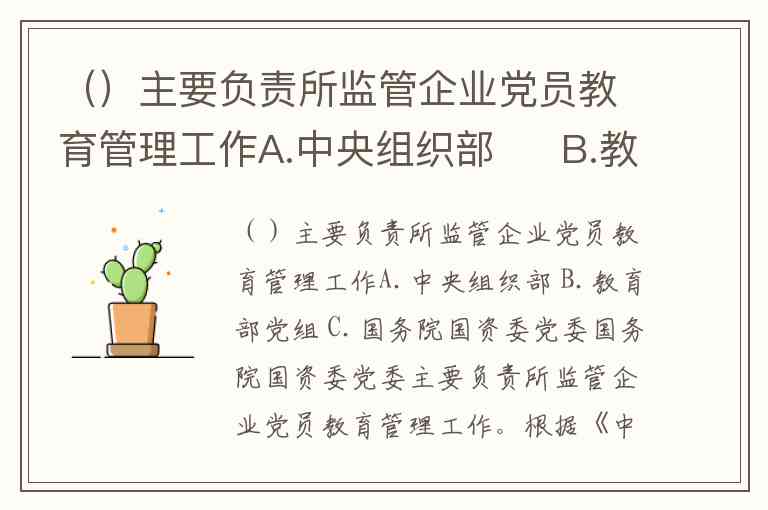 ()主要负责所监管企业党员教育管理工作A.中央组织部 B.教育部党组 C.国务院国资委党委
